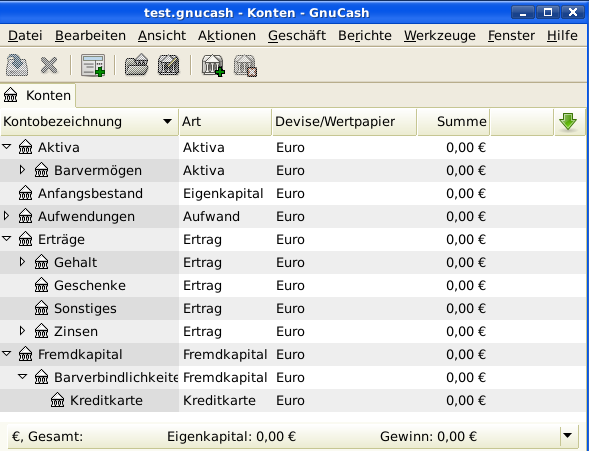 Kontenplan aufbauen. Ein Kontenplan ist einfach eine neue GnuCash-Datei, in
