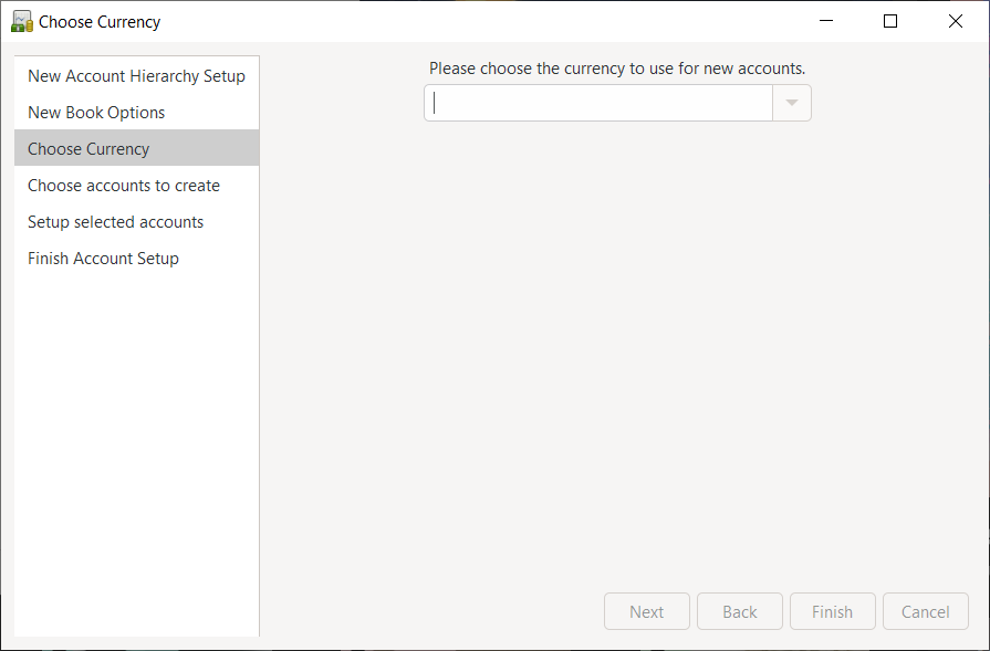 20:10:22 <acesonnall> Hey, chat. I've just installed GNUCash 5.4 on Windows 10 and I'm at the section to choose a currency, however there's nothing in the drop-down nor is there any auto-complete when I type anything (like USD). Is this expected? https://usercontent.irccloud-cdn.com/file/pyE5dcpk/Choose%20Currency%20Tab%20(New%20Account%20Creation)